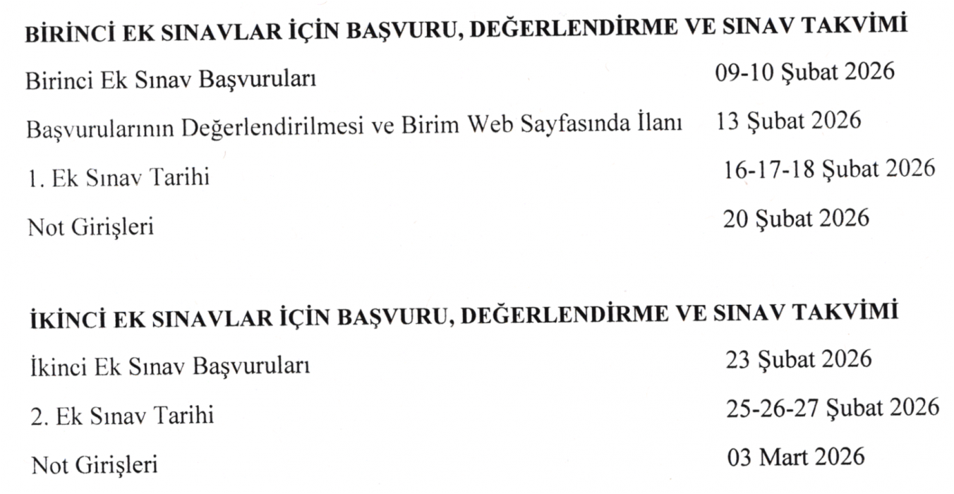 Azami Süresi Dolan Öğrencileri İçin Ek Sınav Tarihleri
